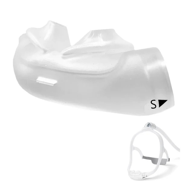 Philips DreamWear Silicone nasal pillow CPAP mask cushion seal fits onto the DreamWear Gel pillow mask or if you are using the Philips UtN DreamWear mask you can interchange it with one of these Silicone pillow cushions instead.